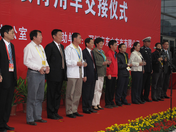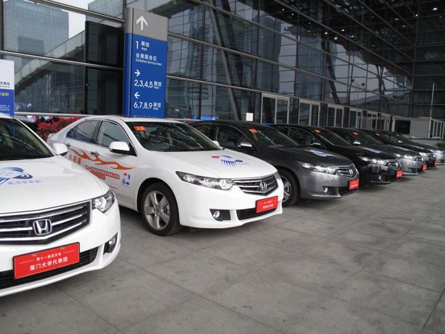 會上還舉行了第十一屆高交會工作贊助車輛交接儀式。高國輝副秘書長代表組委會接受了由武漢東風本田汽車有限公司提供的70輛東風本田思鉑睿轎車,作為本屆高交會各省市、高校團組專用工作贊助車,并向東本公司頒授“第十一屆高交會唯一指定用車”證牌。這是繼第九屆高交會雙方友好合作后,高交會組委會與東本(前兩屆是深圳市東本車友汽車有限公司)的第三次攜手。隨后,由主席臺上7位領導為各團組代表頒發了工作用車。