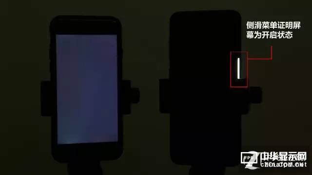 更為重要的是,伴隨著漏光問題,在屏幕下方還出現(xiàn)了異常的光斑。而AMOLED的像素點(diǎn)獨(dú)立發(fā)光的優(yōu)勢,讓屏幕的側(cè)滑菜單亮起的時候其他區(qū)域依舊保持了純黑,優(yōu)勢十分明顯。
