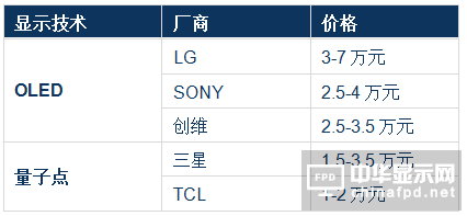 三、量子點TV和OLED TV:性價比和產能限制決定10年以上共存格局