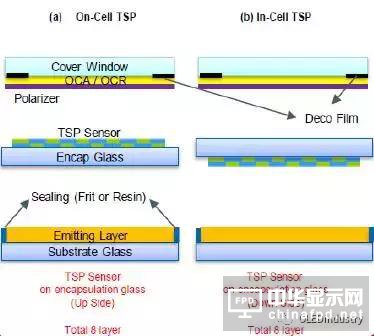 而搭載OGS、In-Cell、On-Cell觸控技術(shù)的觸控面板只有“兩層”架構(gòu),因此在全貼合需求興起的浪潮之中都占據(jù)有各自的市場(chǎng)。