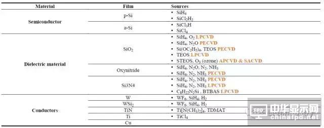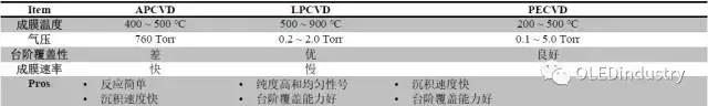 Table 3 Display 制造中幾種CVD 技術的優(yōu)缺點(1)