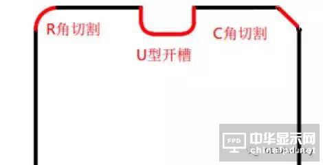 目前異形切割的主流方案是在屏幕面板上切兩個C角,兩個R角,一個U槽。該方案里主要是圓弧切割,如若采用刀輪切割方案,則崩邊嚴重。