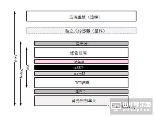 在一個(gè)典型的觸控屏中,顯示屏疊層和顯示面板中有很多層。常見的做法是,將觸控傳感器作為一個(gè)單獨(dú)或獨(dú)立的層,覆蓋到疊層式層壓顯示面板中的顯示屏上。