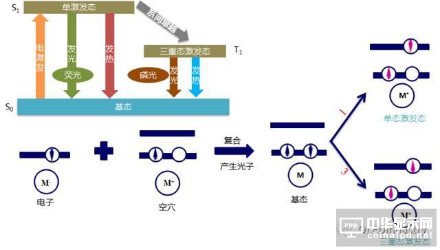 由電極注入的電子和空穴在有機發光層中復合釋放能量