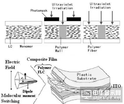單穩態鐵電液晶柔性顯示器的結構和原理圖