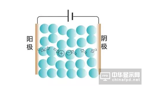 注入的電子和空穴等電荷在分子之間做跳躍運(yùn)動(dòng),并向?qū)γ娴碾姌O移動(dòng)。接著被輸入的空穴和電子到達(dá)目的地——發(fā)光層,并互相找到對(duì)接的電荷進(jìn)行結(jié)合。從原本中性分子中奪走電子注入空穴,或給予電子注入電子,這些電荷在發(fā)光層重新結(jié)合還原成中性分子,所以稱為再結(jié)合。