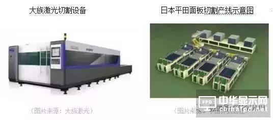 據相關資料了解,目前主流的激光切割機型是紅外固體皮秒激光器,采用內聚焦切割方案。該方案在成本和效率之間取得了最大的均衡。國內的面板激光切割設備廠商主要有:大族激光,盛雄激光,德龍激光,國外廠商主要是日本平田。