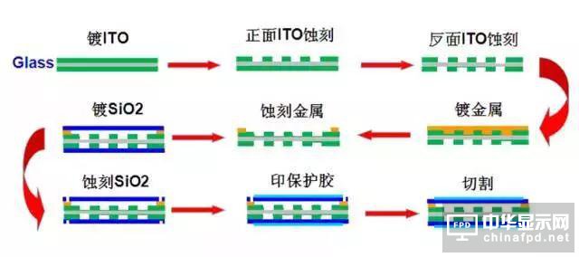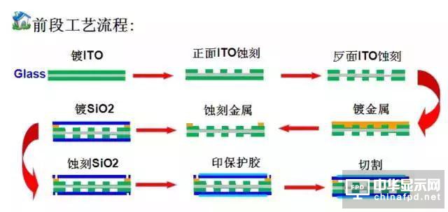 Sensor生產(chǎn)原理: Sensor是在玻璃表面用ITO(一種透明的導電材料)制作成橫向與縱向電極陣列,起感應作用,是電容式觸摸屏最重要的部件之一。
