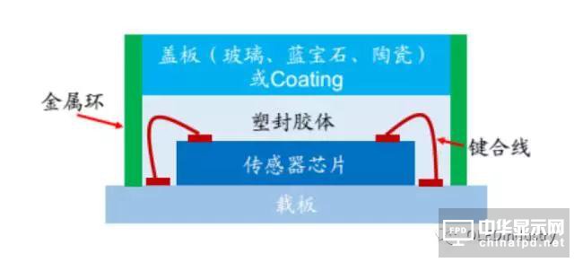 目前大多數的指紋識別芯片封裝還是采用wire bonding 工藝,采用wire bonding 工藝會有金屬引線的存在,為了保證指紋識別芯片表面與蓋板材料或者coating 貼合,則需要進行塑封,保證芯片表面平整并將金屬引線掩埋。