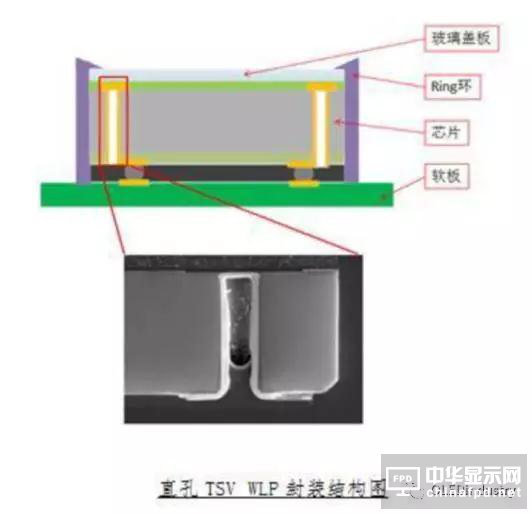TSV 封裝(硅通孔封裝技術)可以使芯片的有效探測面積大幅度增加,并且使芯片的厚度和模組的厚度都實現縮減。但現在主要使用在高端機型前臵蓋板指紋識別和盲孔電容式UnderGlass 指紋識別中。
