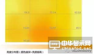 以下是OLED TV連續運行一小時后,使用儀器分析的亮度分布圖: