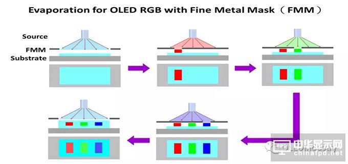由于目前AMOLED面板量產(chǎn)的主流方法是真空蒸鍍,而真空蒸鍍必須用到FMM蒸鍍技術(shù),在干式制程中運(yùn)用遮罩將RGB 三種光色分子分別附著于狹小的區(qū)域中。應(yīng)用于大尺寸面板時(shí),大尺寸Mask在蒸鍍制程中易產(chǎn)生變形與材料過(guò)度使用等弊病,維持平坦的表面是制程相對(duì)較難的精密金屬遮罩的關(guān)鍵技術(shù)。