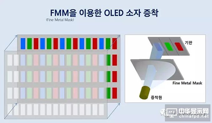 而FMM就是在LTPS光盤下面帶上的精細(xì)的金屬掩模。掩膜是一種在薄鋼板上有一個(gè)小孔的器件,當(dāng)沉積有機(jī)材料時(shí)只能沉積在特定位置。如果您不使用蒙版,則通過(guò)將紅色,綠色和藍(lán)色放在紅色(R)像素上,將無(wú)法獲得純色。因此,在沉積過(guò)程中不同的時(shí)間使用RGB的每個(gè)位置和形狀的不同掩模。