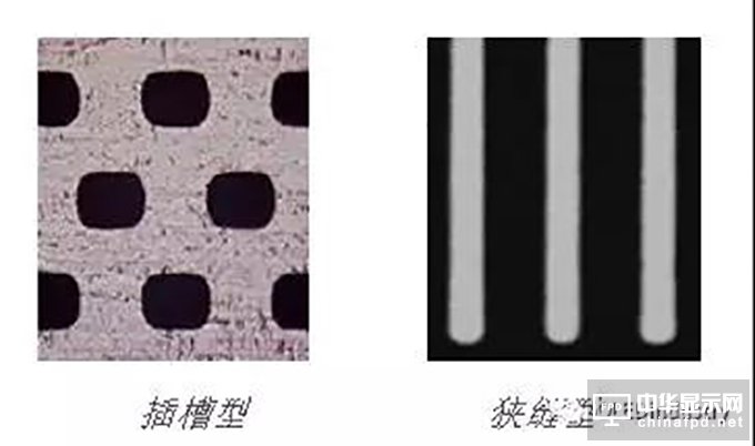 從FMM 開孔形狀來(lái)區(qū)分, 根據(jù)FMM 的開孔形狀的不同, FMM 可以再進(jìn)一步細(xì)分為插槽型 和 狹縫型。