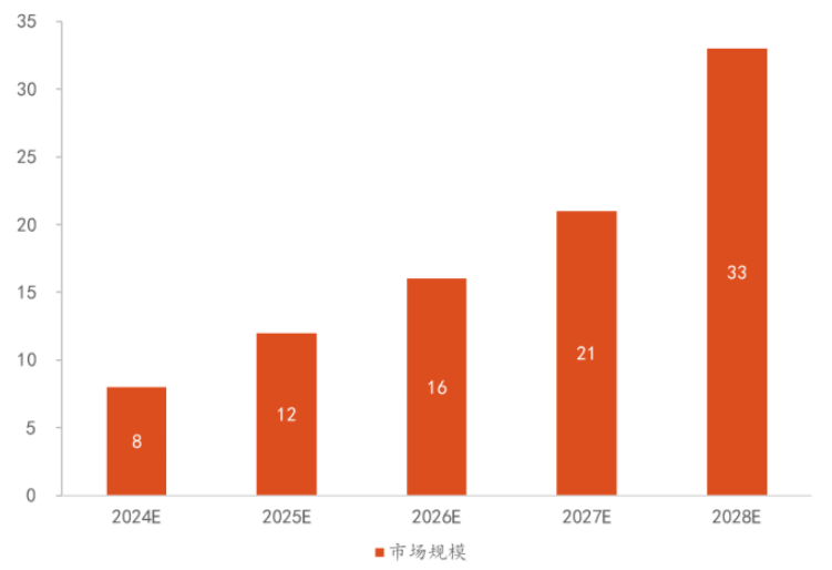 圖:2024-2028 年全球 Mini LED 直顯市場(chǎng)規(guī)模 預(yù)測(cè)(單位:億美元)