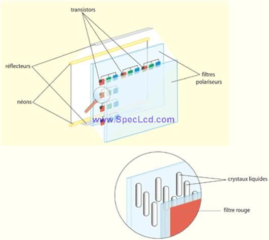 為了保證有均勻的顯示畫面,光線會在達到玻璃基板之前經過一組反射系統來重新導向。盡管第一眼瞥見時好像不是那么一回事,但玻璃基板卻因為要這么做變的異常復雜。事實上,有兩塊玻璃面板,在子像素的兩邊各一塊,都被紅、綠或藍色濾光片給覆蓋著。在一臺15吋顯示器中,加起來有1,028 x 768 x 3= 2,359,296個子像素。每個RBG三元素被一個可以產生個別的電壓的晶體管所控制。這樣的電壓,可變化的幅度很大,會造成每個子像素里的液晶向特定角度移動。該角度決定了通過子像素光線的多寡,接著,成像在玻璃面板上。液晶實際的作用是讓光線轉向而能夠在擊中顯示畫面之前通過一個偏向的濾光片。如果液晶與濾光片以同樣的方向排列,則光線會通過。另一方面,當液晶與濾光片呈垂直時,玻璃面板會變的黑暗無光。